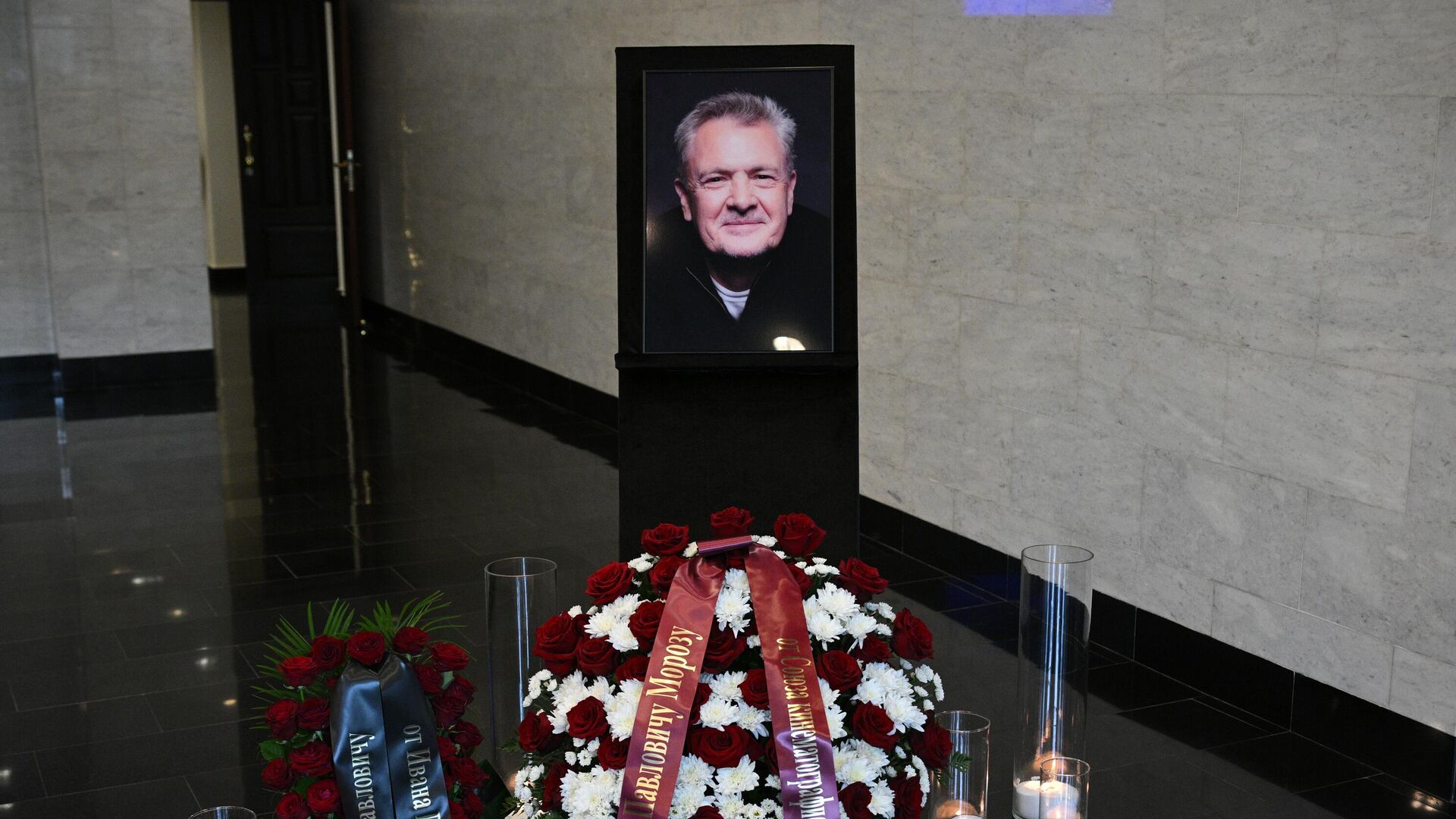 Церемония прощания с режиссером и актером Юрием Морозом началась в Большом траурном зале Центральной клинической больницы (ЦКБ) №1.